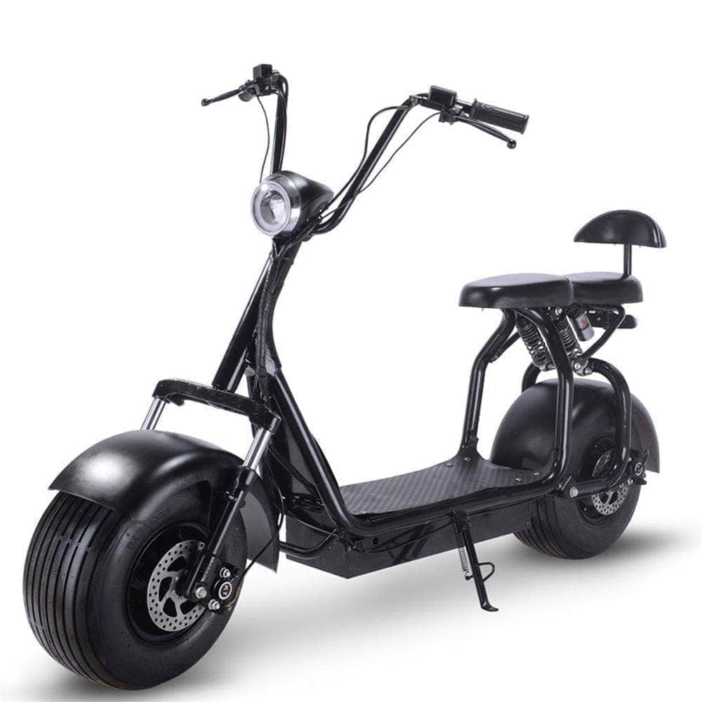 MotoTec Knockout 60v 1000w Fat Tire Electric Scooter - rear hub motor, 2 seater with backrest