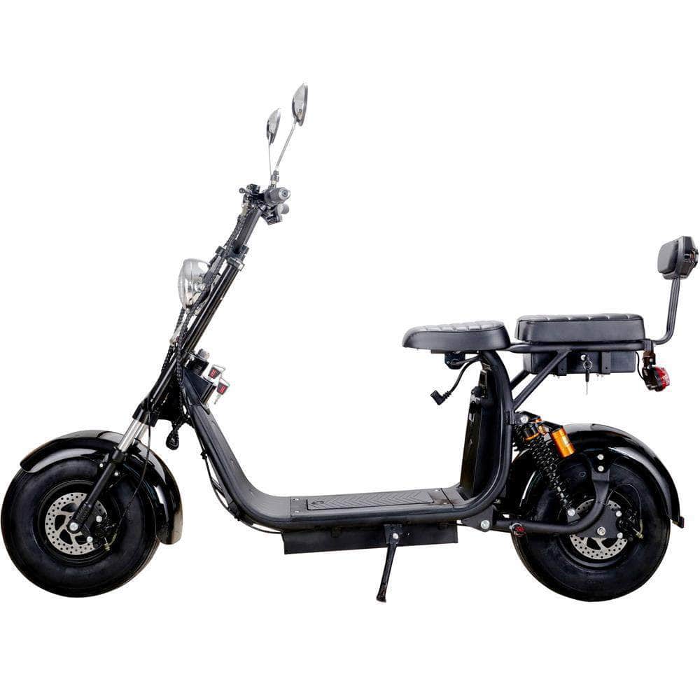 MotoTec Knockout 60v 2000w 36 Ah Fat Tire Electric Scooter - rear hub motor, 2-seater with backrest, under seat storage