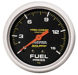 Fuel Pressure Gauge - Pro-Comp - 0-15 psi - Mechanical - Analog - Full Sweep - 2-5/8 in Diameter - Liquid Filled - Black Face - Each